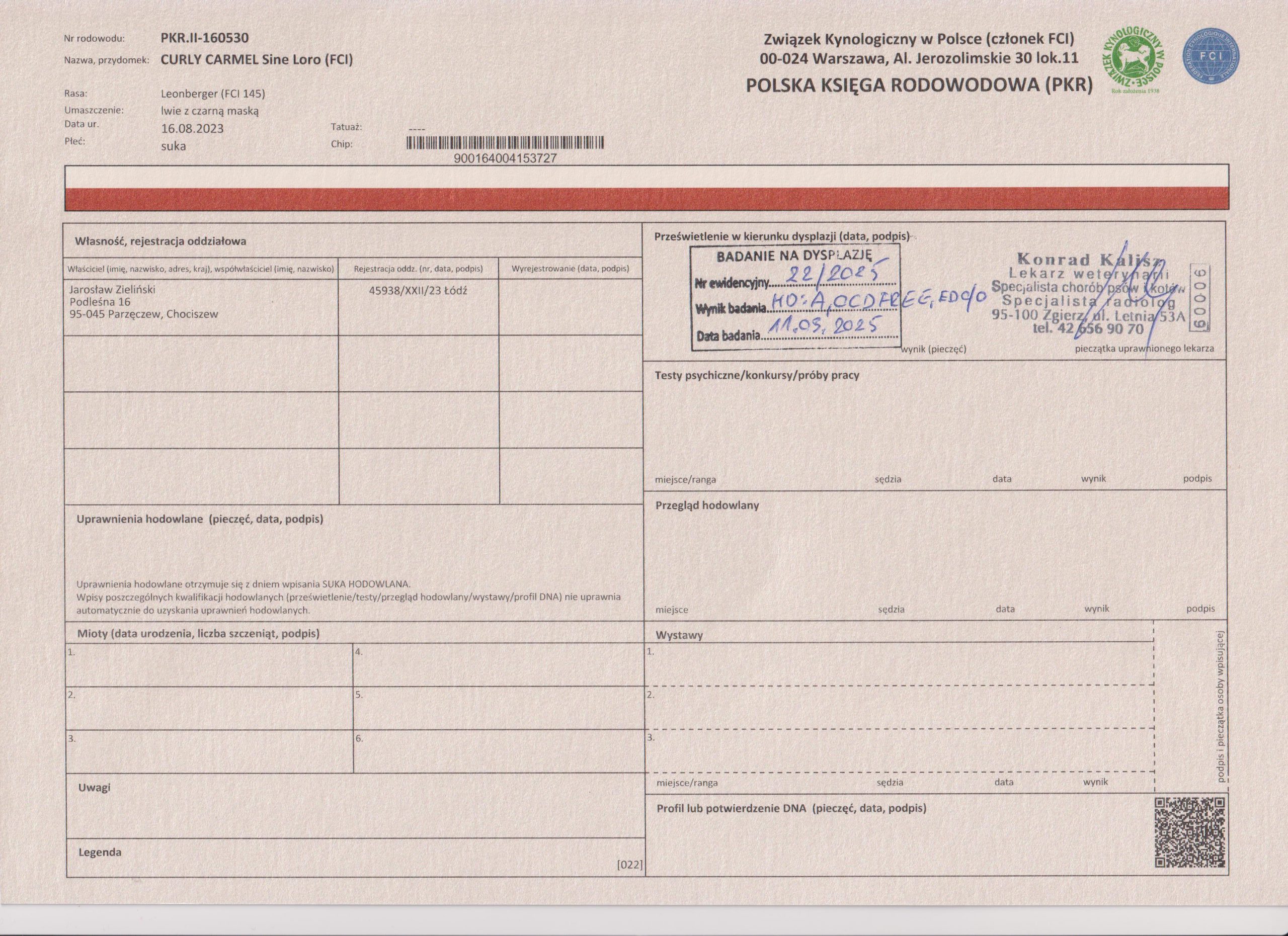 HD A – wolny od dysplazji ( biodra )