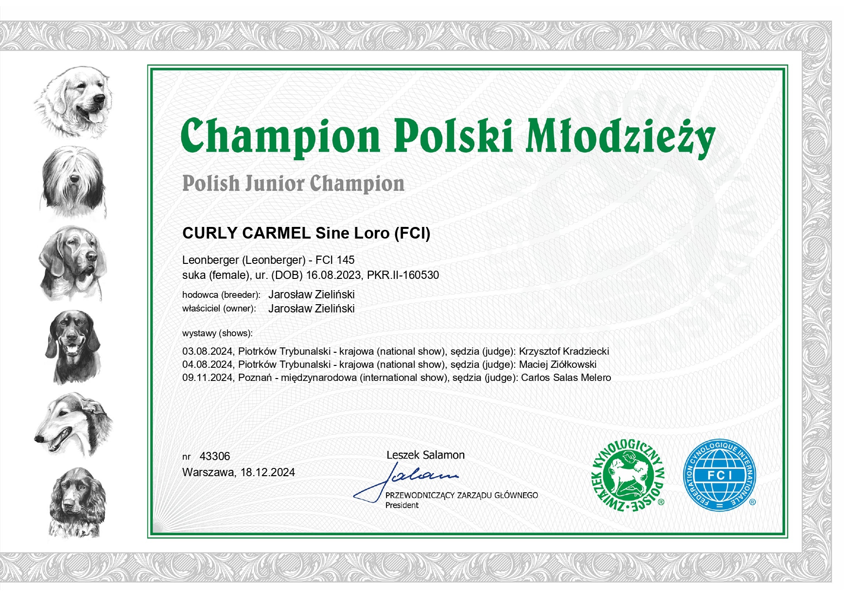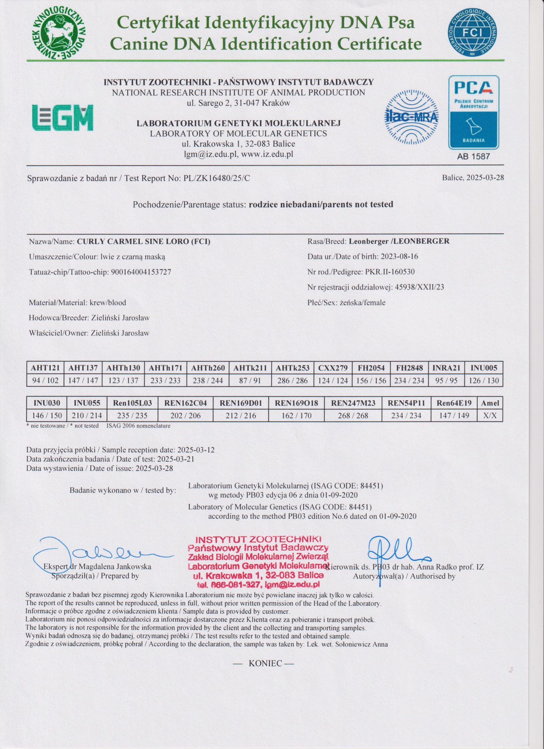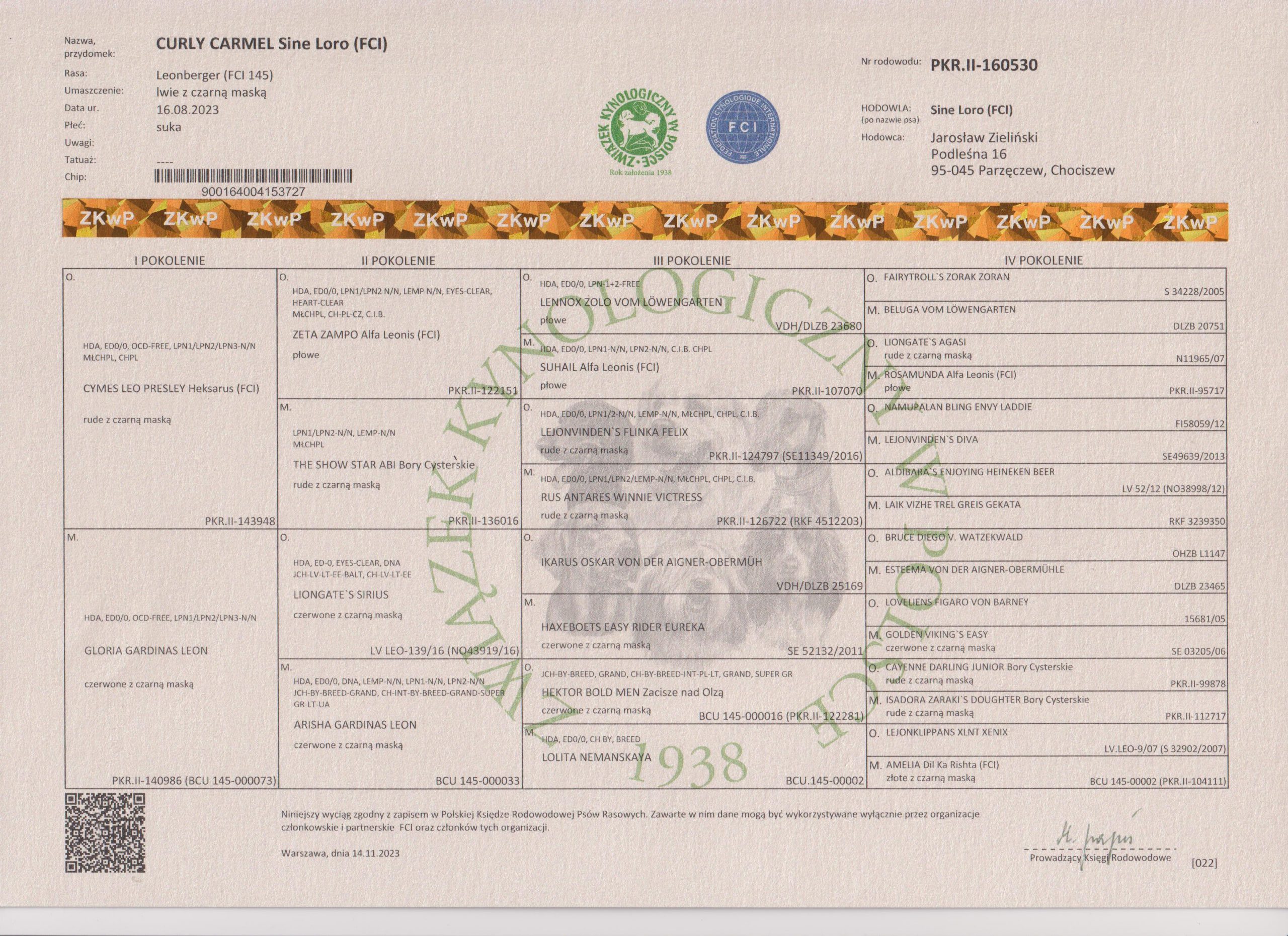LPN1, LPN2, LPPN3, LEMP- wolny po rodzicach / CYMES LEO PRESLEY HEKSARUS ; GLORIA GARDINAS LEON /